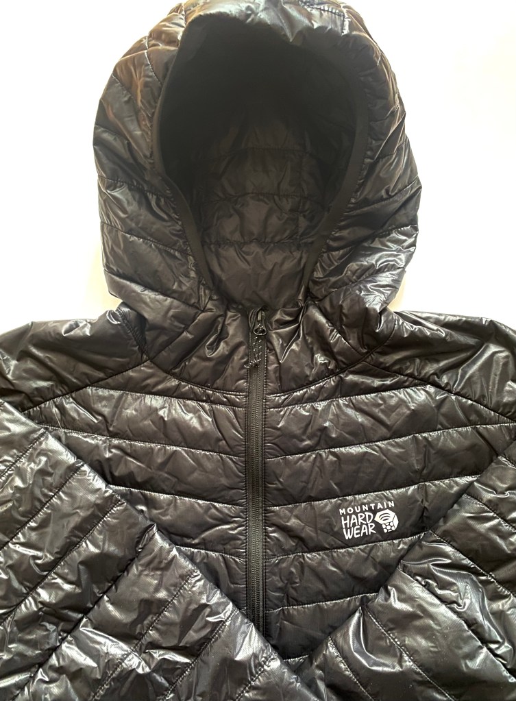 After searching through the archives of The North Face, Arctery’x, Salomon, and Rab, I fell onto the Mountain Hardwear Ghost series of garments. I was immediately struck by how much this line stood out vs the others I had researched. Form-fitting, and not overly baggy. Extremely light, yet durable. Constructed with an outer layer of fabric that appeared bright vs dull, as well as a subtle logo placement. The Ghost “Whisperer” hoody series was made of 800 fill goose down, which would have worked great to toss on at the end of my run to keep warm, but I needed something that would not get overly wet during my high output period of running. Therefore my attention turned to their Ghost “Shadow” line. This was a similar garment, but constructed with highly breathable synthetic insulation. I opted for the all black colour-way, which was the stealthiest configuration.